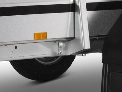 Die abklappbare Rückwand erleichtert die Beladung des Anhängers und ermöglicht auch den Transport längerer Güter.