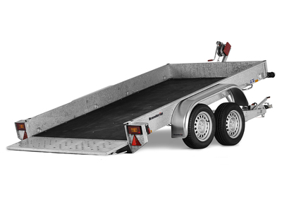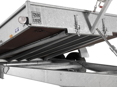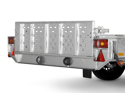 La rampe est dotée de raidisseurs supplémentaires pour permettre le chargement de matériels lourds dans la remorque.