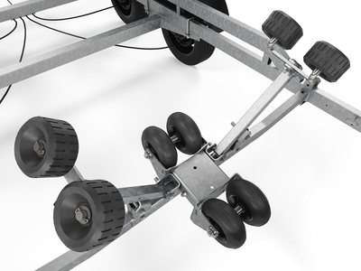 Heavy duty super soft keel rollers for extra protection of the hull of the trailer.