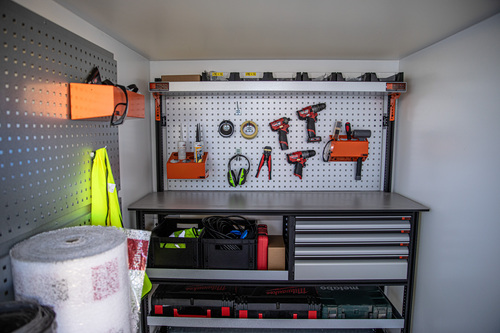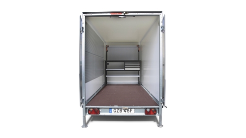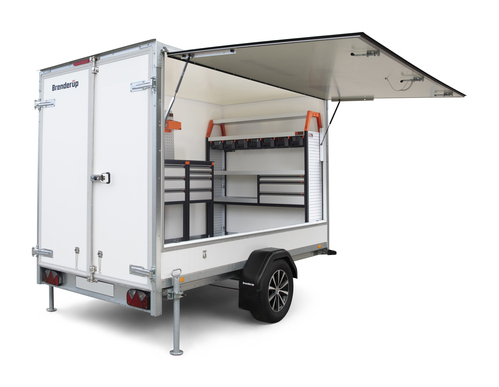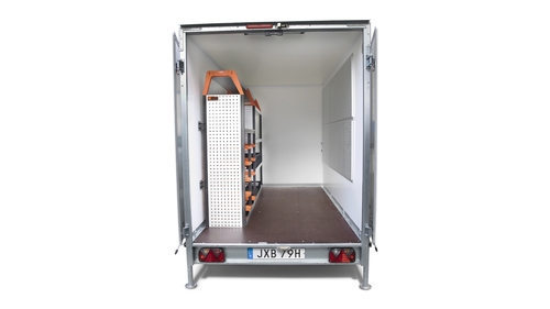 Med utökad förvaring och anpassningsbar inredning kan vår hantverkarinredda släpvagn rymma alla dina verktyg och all din utrustning. Släpet skyddar mot väder och vind, och erbjuder även en bekväm arbetsyta med generös ståhöjd.
