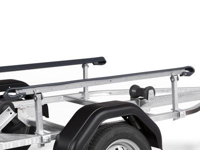 Obromsad trailer med skenor för mindre båtar upp till 15 fot. Tippbar bakre vagga och justerbara skenor för enkel anpassning till din båt. Varmgalvaniserat chassi för lång hållbarhet. Elen är helt skyddad i båttrailerns chassi. Vattentäta hjullager förlänger livstiden. Helskyddad vinsch och vinschtorn som är enkelt att anpassa, vinschtornet är även utrustat med en extra säkerhetsvajer för användning vid transport. Smidig, vikbar och vattentät belysning vilket gör både av- och pålastning väldigt enkel. Båttrailern på bilden kan vara extrautrustad.