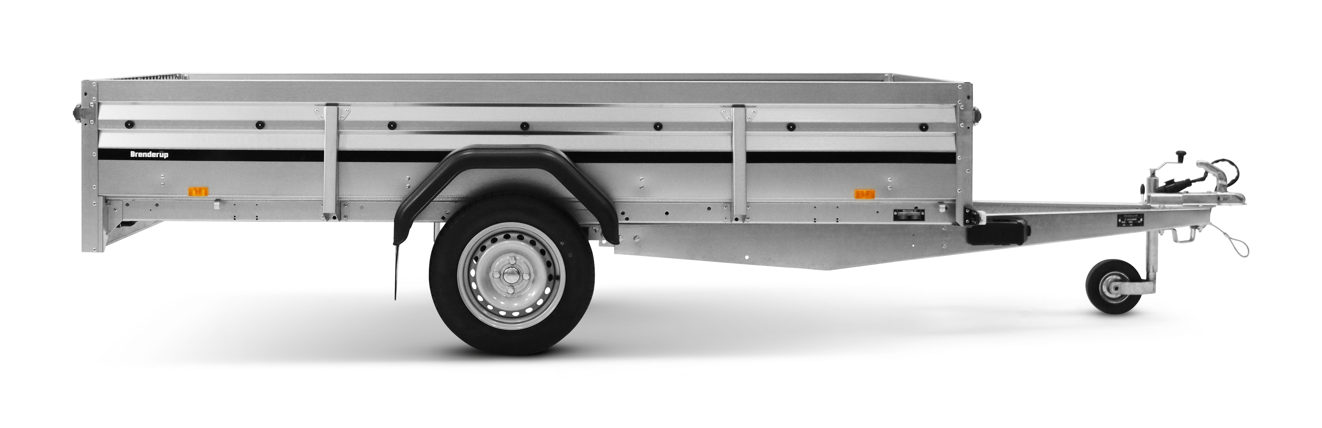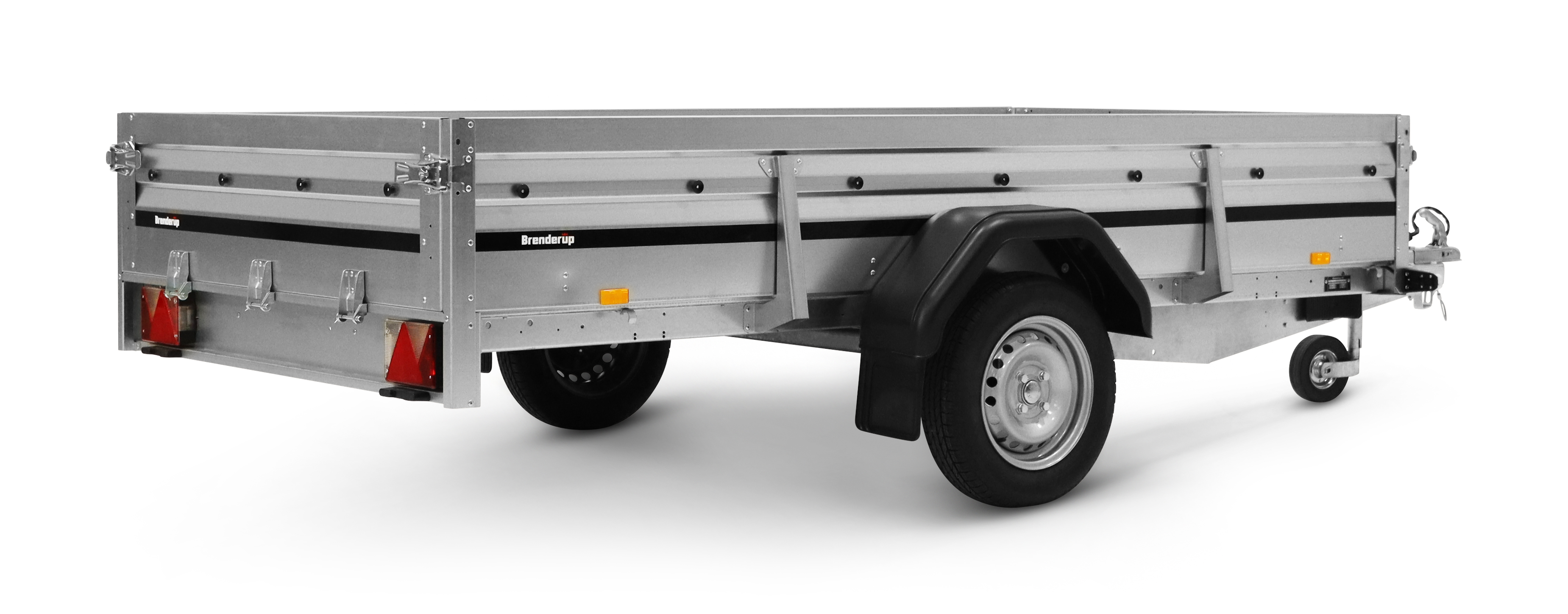 2300S är den största modellen i serie 2000, byggd för att rymma mer med sina förstärkta sidopaneler och 40 cm höga sidor. Tack vare fällbara fram- och baklämmar blir det enkelt att lasta längre gods, och tippfunktionen gör både lastning och lossning smidigare – perfekt för mindre maskiner som gräsklippare eller skotrar. För extra stabilitet har släpet ett stödhjul som standard, och invändiga surrningsöglor ser till att lasten hålls säkert på plats. Den bakre lämmen är dessutom klädd i slitstark aluminiumdurk, vilket ger bättre grepp vid lastning och en hållbar yta med lång livslängd. Vagnen på bilden kan vara extrautrustad.