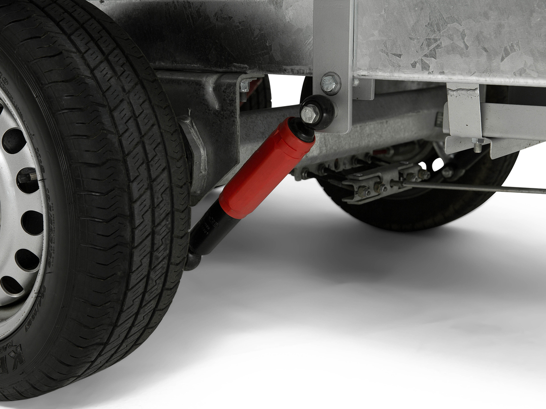 4 dämpare. Upp till 2000kg för enkelaxlad och 3500kg för boogiaxlar. Monterad på släpvagn